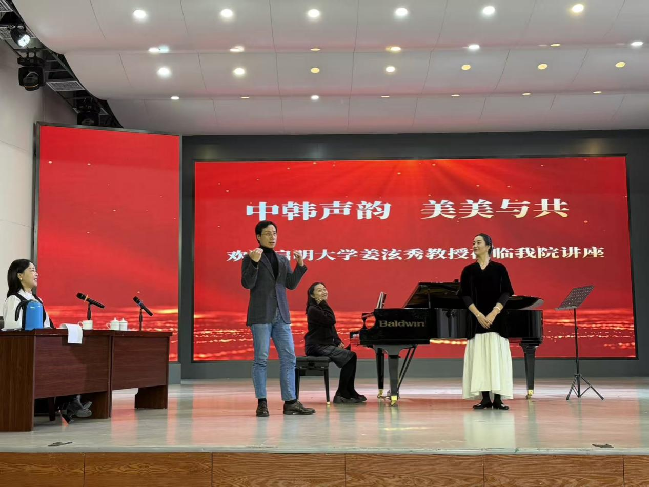 讲座中,姜泫秀教授以专业的理论阐释、生动的现场示范,围绕声乐演唱中的气息控制、音色塑造、作品解读与情感表达等核心要点展开系统讲解。针对师生在声乐学习中遇到的重点难点问题,他进行精准剖析并提供针对性指导,通过互动答疑、现场纠错等形式,让在场师生直观感受声乐艺术的魅力与专业技巧的精髓。整场讲座内容详实、逻辑清晰,兼具学术深度与实践指导性,为高校声乐教学与专业人才培养提供了重要参考,现场师生专注聆听、积极互动,学习氛围十分浓厚。