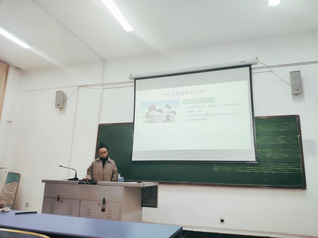 2018年11月27日中午12点,在艺术楼A212教室召开了WilliamHill威廉希尔青马工程暨学生干部培训第二讲,参加本次培训的有辅导员曲星颐、各班班长、团支书以及党支部和团学会全体成员。