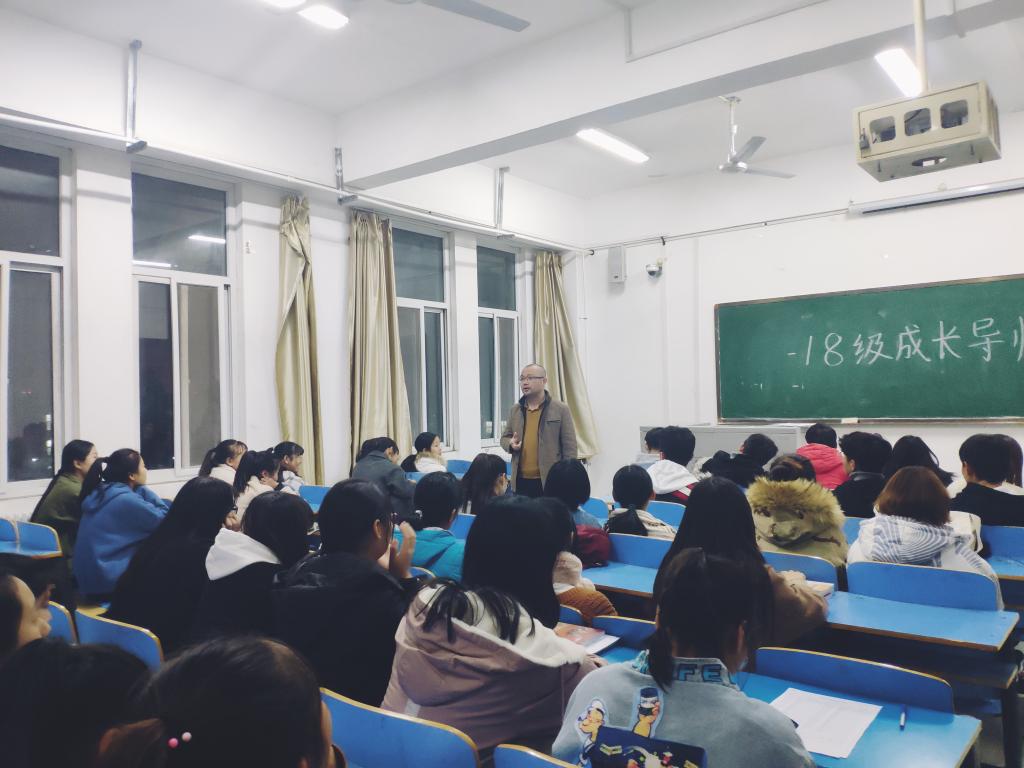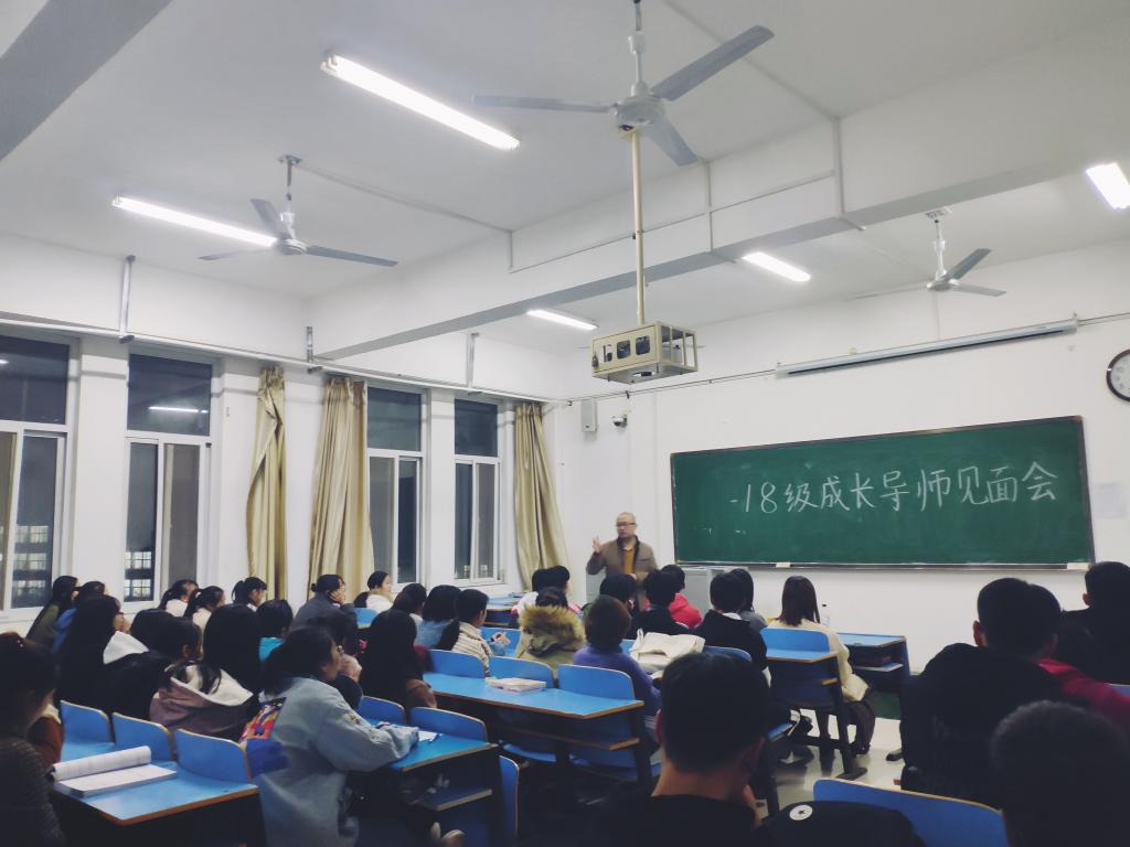 2018年11月26日晚上七点,在艺术楼411教室举办了WilliamHill威廉希尔2018级新生的成长导师见面会。本次见面会由WilliamHill威廉希尔辅导员曲星颐主持,主讲人为学工部副部长杨成虎,参会的为WilliamHill威廉希尔全体18级新生。