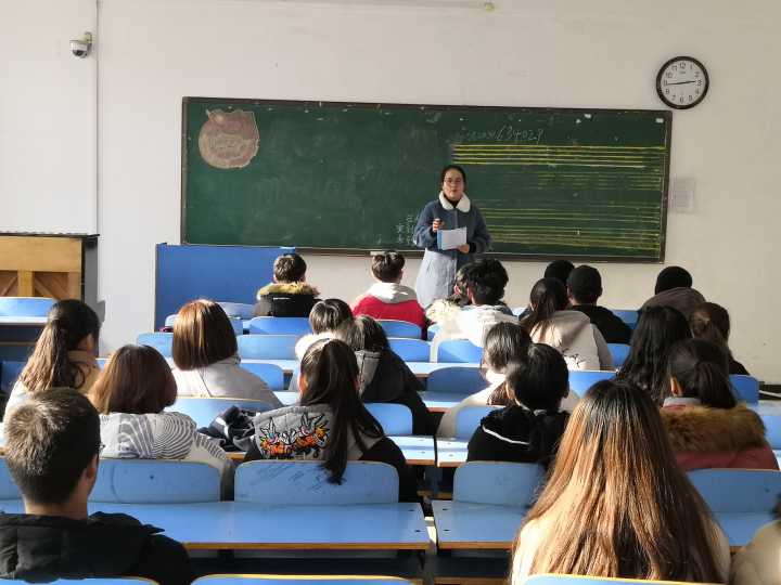 袁立文首先就马克思宗教观、中国特色社会主义宗教理论、党的宗教工作基本方针以及我国相关的宗教法律法规向大家做了深入详细的解读,帮助同学们认清宗教本质,把握校园文化价值导向,防范抵制非法宗教活动,确保同学们宗教信仰状况不偏离正常轨道。她希望同学们在课余时间积极组织各种宗教知识学习活动,以强化对大学生的世界观、人生观、价值观和马克思主义宗教观的教育。最后袁立文带领大家学习了习近平总书记关于宗教工作的重要论述,引导学生热爱祖国和人民,积极践行社会主义核心价值观。
