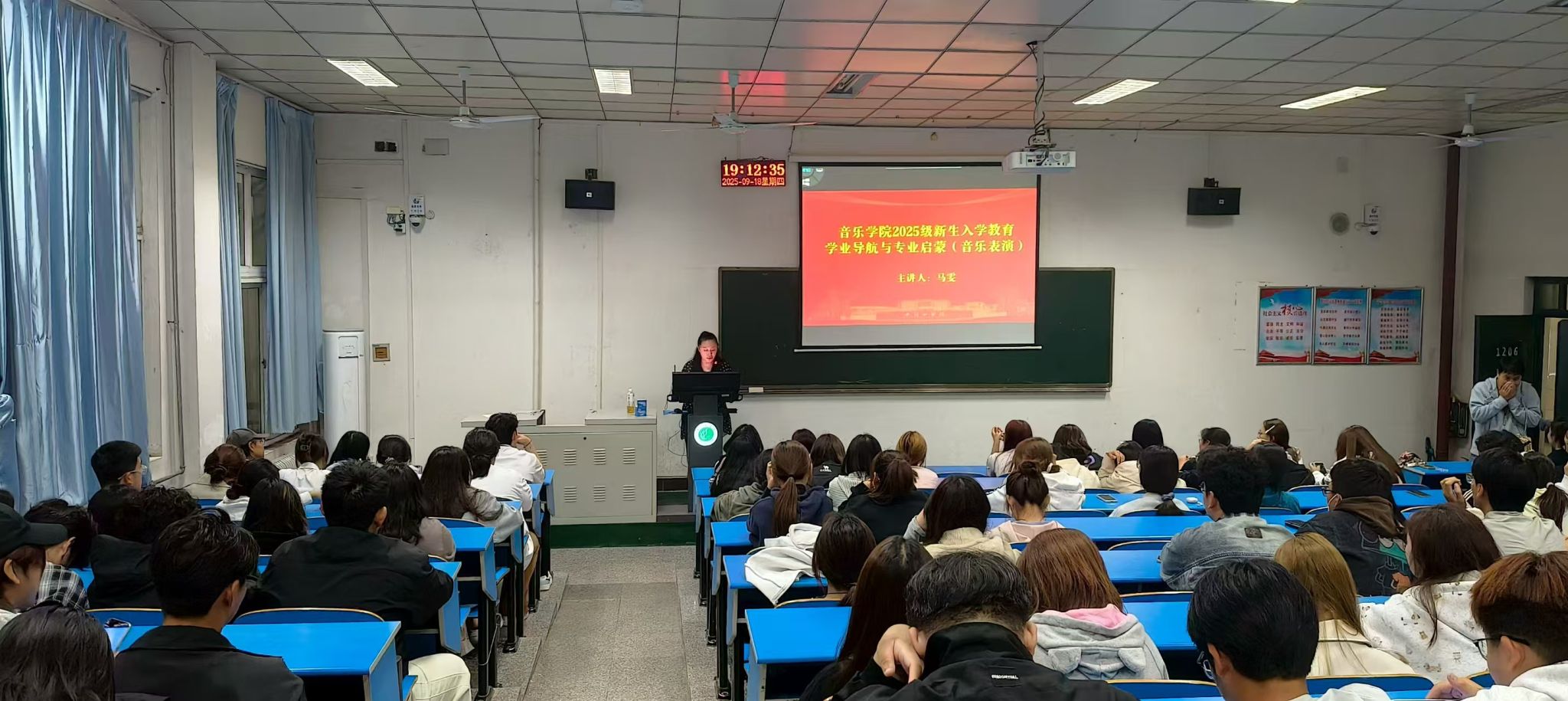2025年9月18日晚,WilliamHill威廉希尔2025级新生学业导航与专业启蒙讲座如期开讲。学院针对音乐学、音乐表演两个专业的人才培养特色,分别邀请李艳老师、马雯老师担任主讲人,为全体新生量身打造了一场干货满满的专业启蒙课。