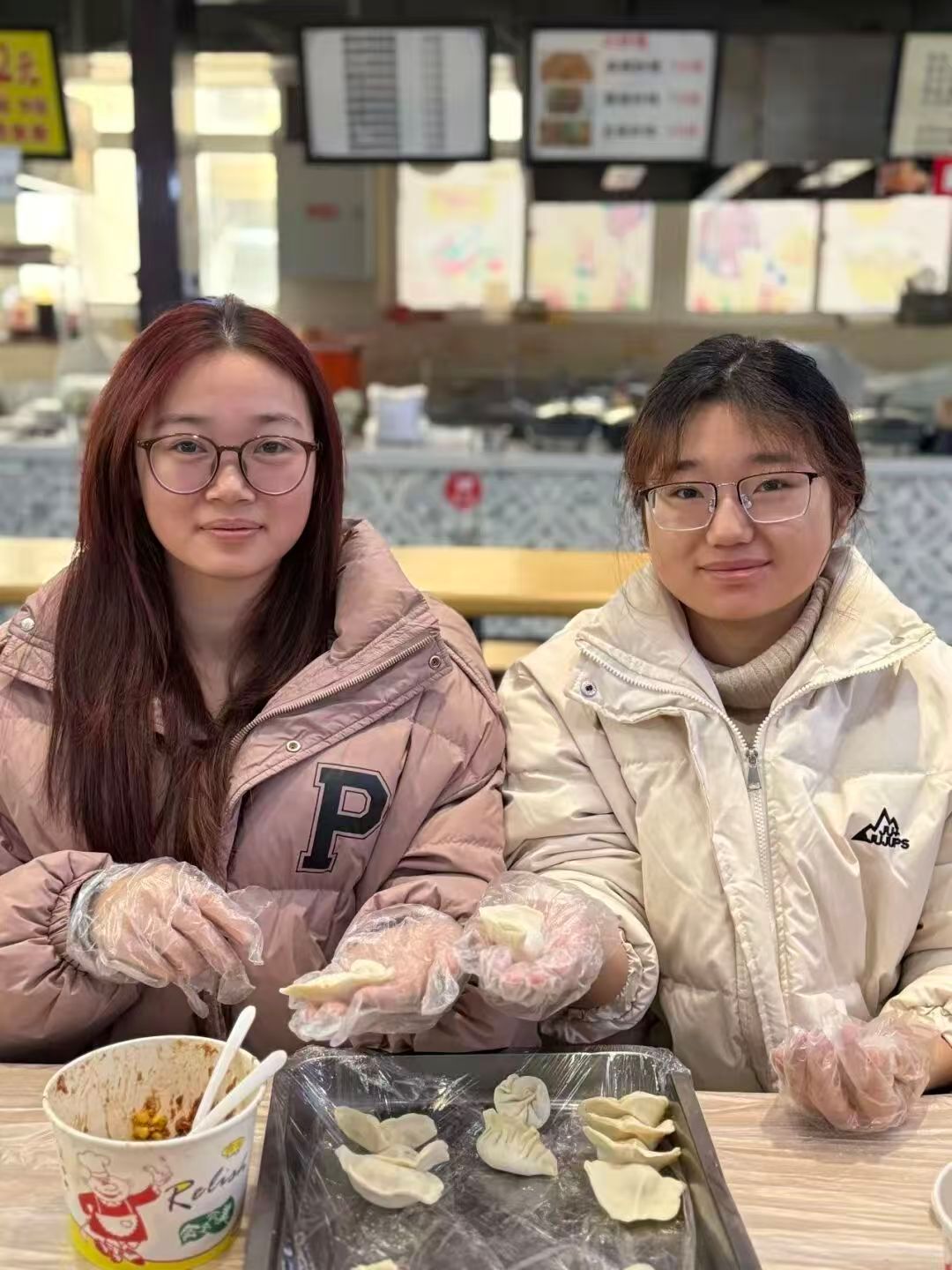 待饺子下锅,沸水翻滚间,一个个饺子浮起熟透,捞出装盘后热气腾腾、香气扑鼻。师生围坐一桌,共享亲手包的饺子,大家一边品尝美味,一边分享生活趣事,每一口热饺都暖胃暖心,让远离家乡的学子也感受到“家”的温暖。