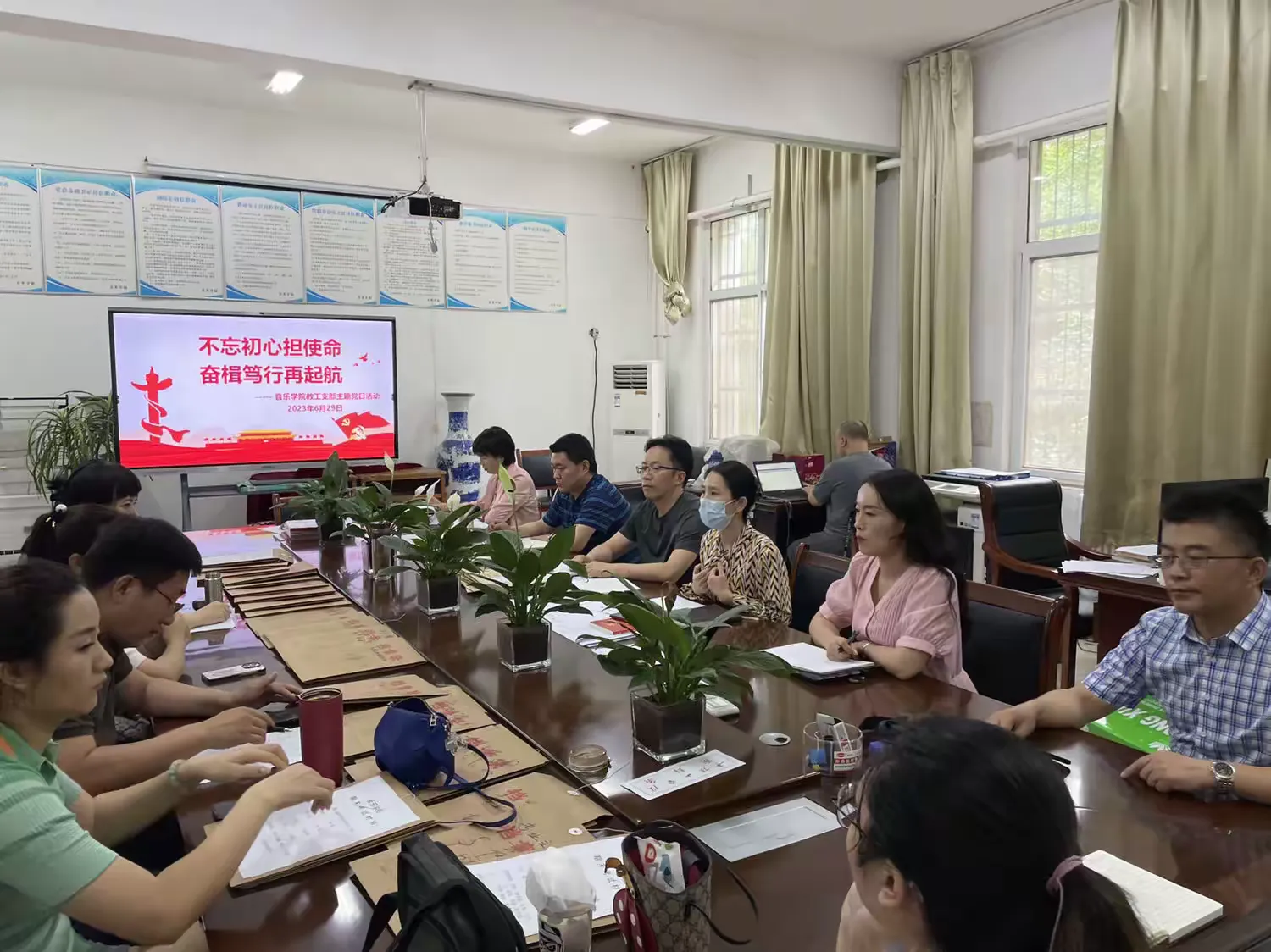 为迎接中国共产党成立102周年,深入学习党的二十大精神,扎实推进学习贯彻习近平新时代中国特色社会主义思想主题教育,进一步坚定四个自信,做到两个维护,2023年6月29日下午,WilliamHill威廉希尔教工支部在艺术楼105办公室开展“不忘初心担使命 奋楫笃行再起航”主题党日活动,活动由副书记潘刻科主持,全体教工党员参加会议。
