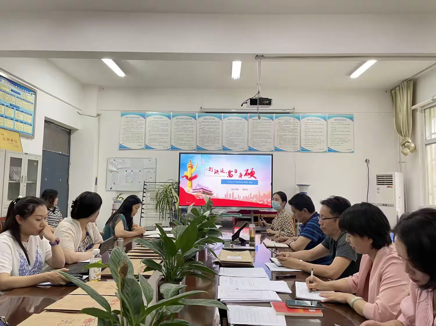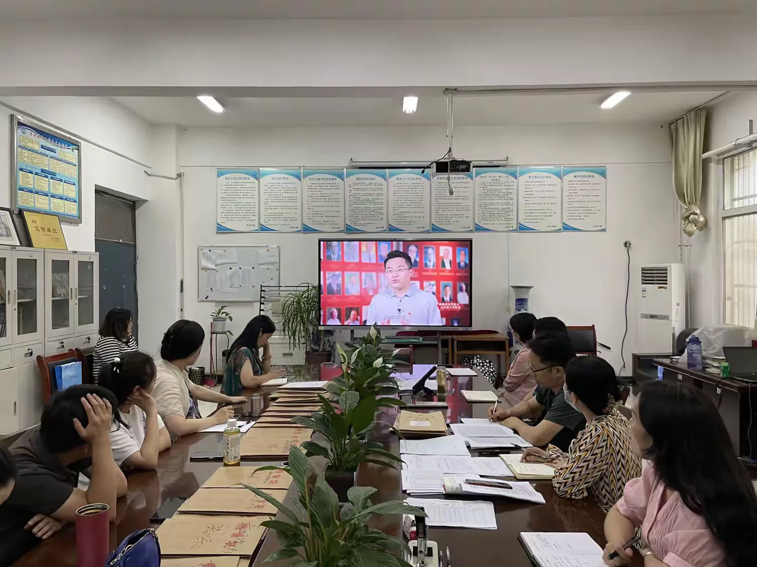 与会同志一起观看《高校党组织示范微党课》、《廉洁好家风》。