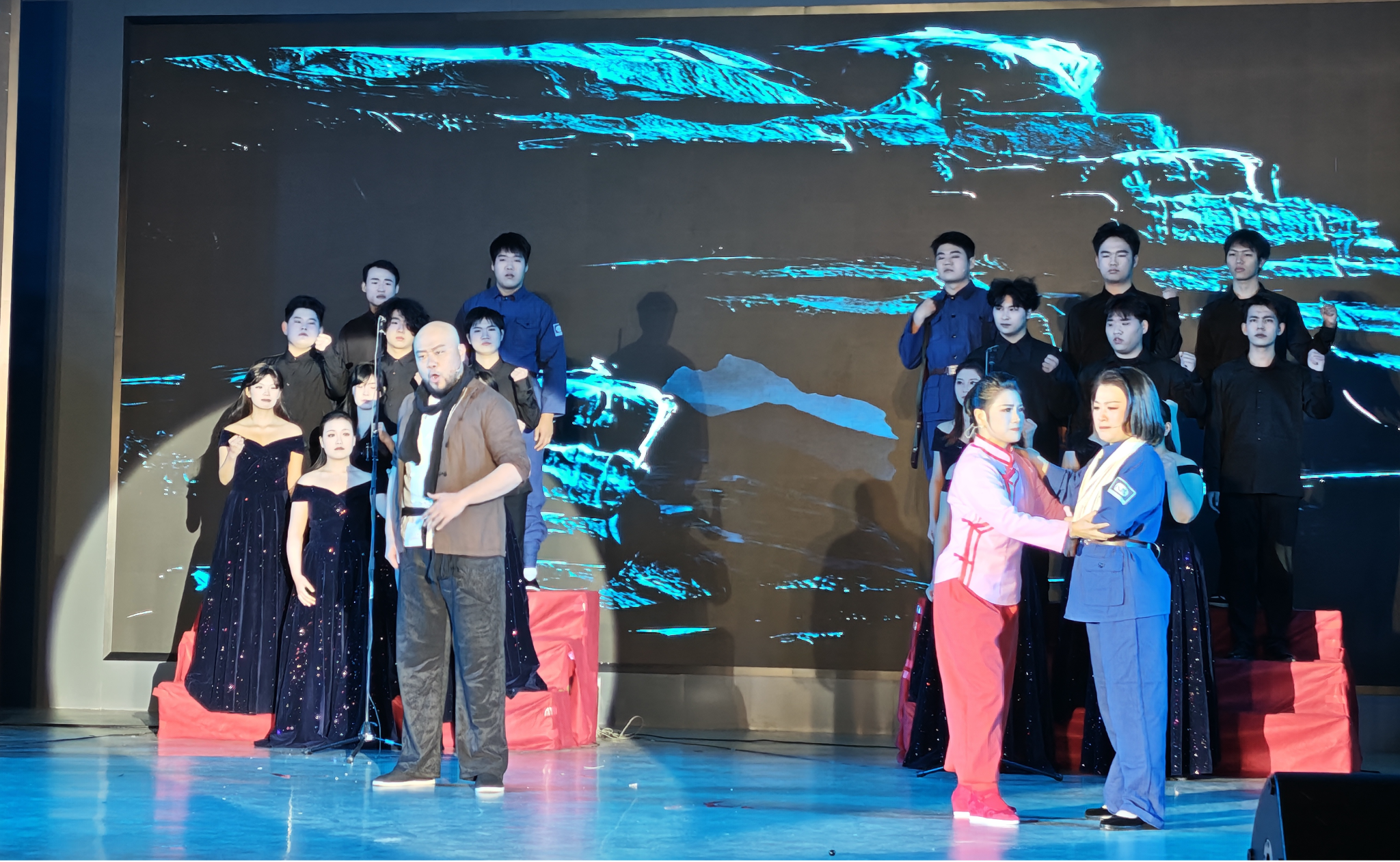 12月11日晚,威廉中国官方音乐厅内座无虚席,掌声不断。由我院师生自导自演的红色歌剧《沂蒙山》在此精彩开演。校党委书记华小鹏、副书记侯延民、副校长于长立及学校部分职能部门领导莅临现场,与师生共同在旋律与剧情中,重温沂蒙精神的时代内涵,感悟中国共产党人精神谱系的磅礴力量。